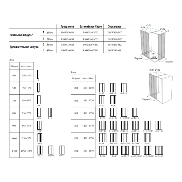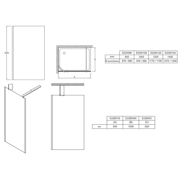 GW9WG0300Z1+GWD010003019 Душ ограждение ST Walk-In Wall 1200 x 2000 черный + транспарент+кронш RAVAK