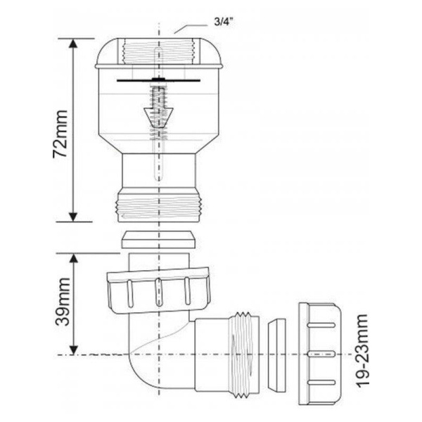 Обратный клапан подпружиненная мембрана 3/4 Ду=19-23мм компрессионное соединение в комплекте с отводом на 90° TUNVALVE