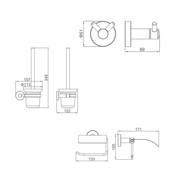 Набор Accoona 121 нержавеющая сталь Ершик+Дозатор+Бумагодержатель открытый+Полотенцедержатель-кольцо