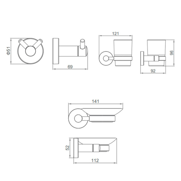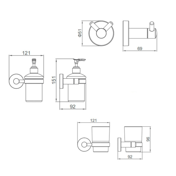 Набор Accoona 121 нержавеющая сталь Ершик+Дозатор+Бумагодержатель закрытый+Полотенцедержатель-кольцо