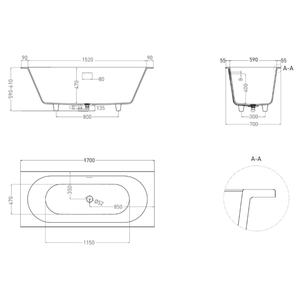 Ванна из искусственного камня Salini Ornella Axis KIT S-Sense 170x70 белая с ножками
