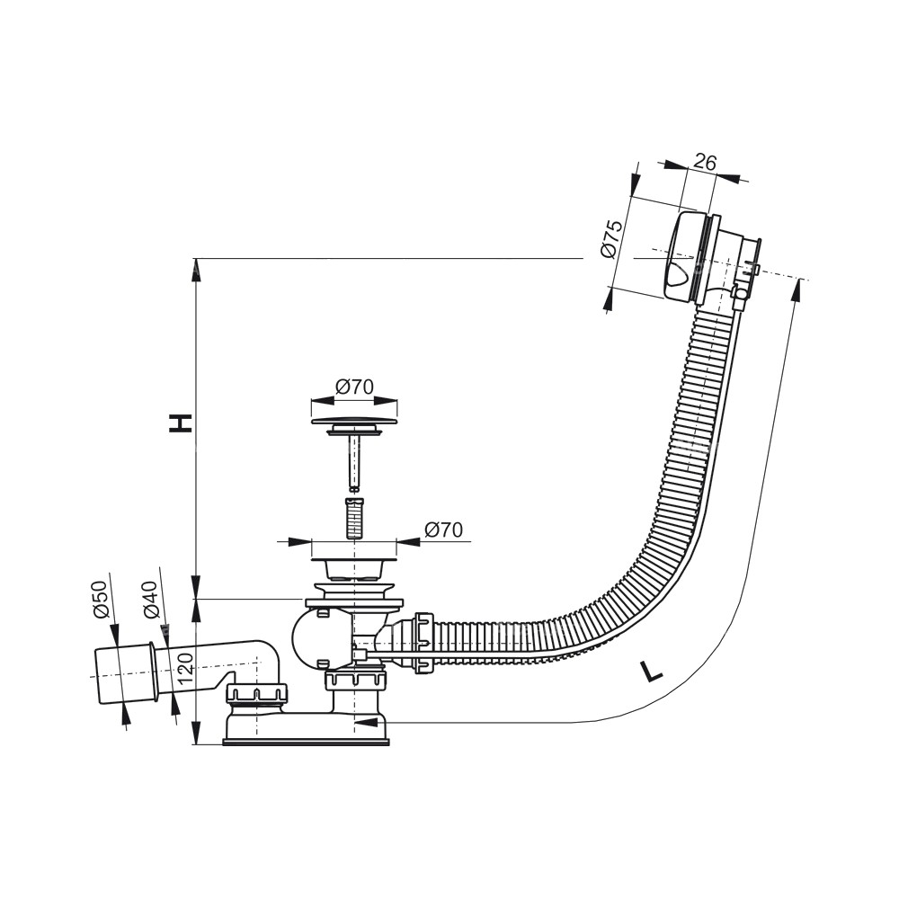 A51BM-80 Сифон д/ван автомат d70 белый ALCAPLAST