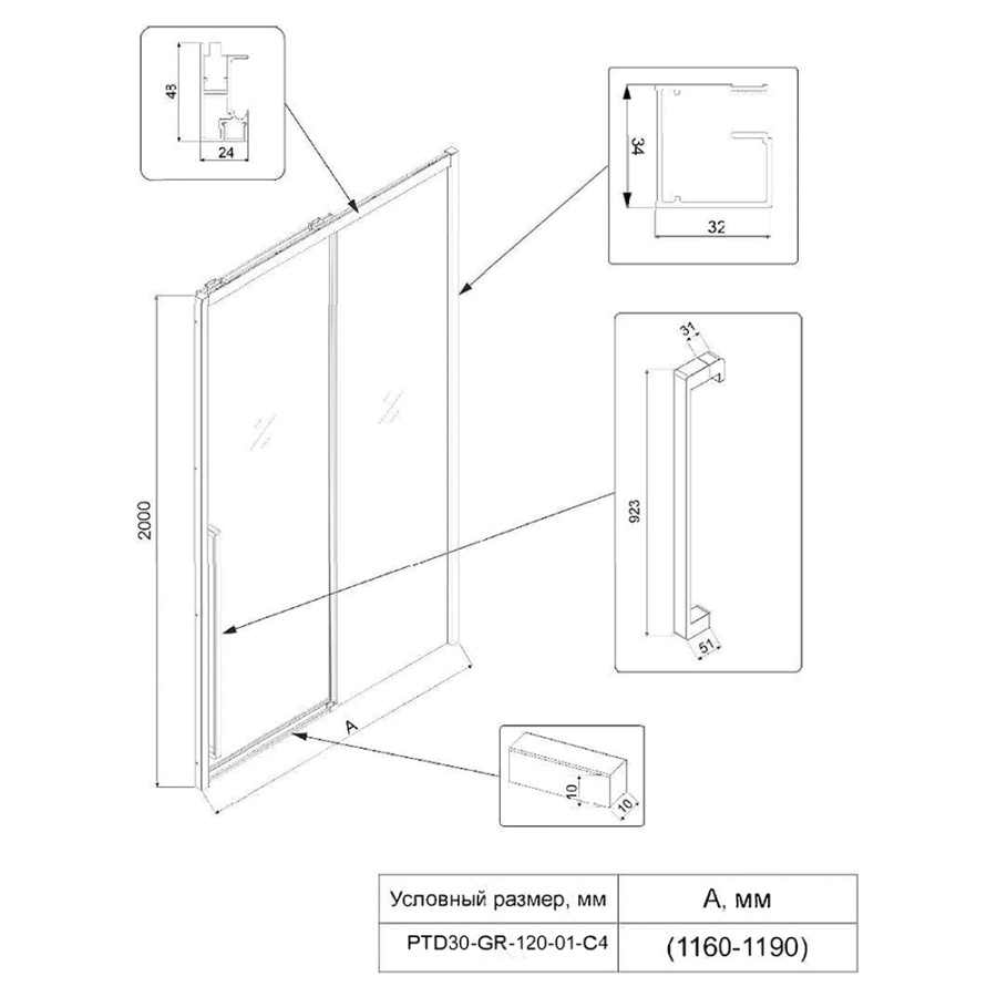 Душевая дверь в нишу Veconi Premium Trento PTD30-GR 120 профиль графит брашированный, стекло прозрачное