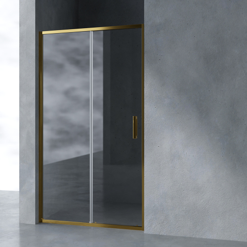 Душевая дверь в нишу AVS Вектор 110 см профиль брашированное золото, стекло прозрачное