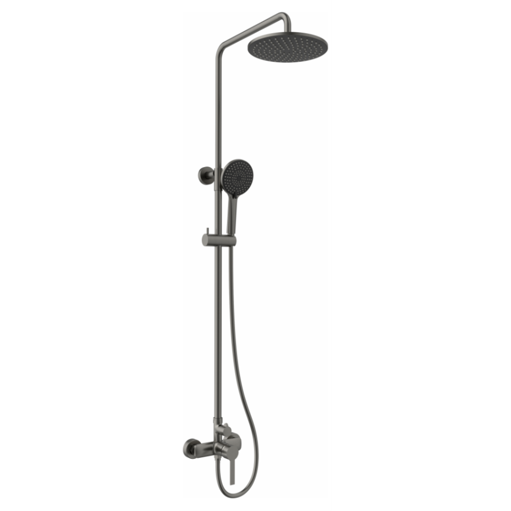 душевая стойка; комплект эксцентриков; смеситель; верхний душ; душевой шланг; ручной душ; инструкция.