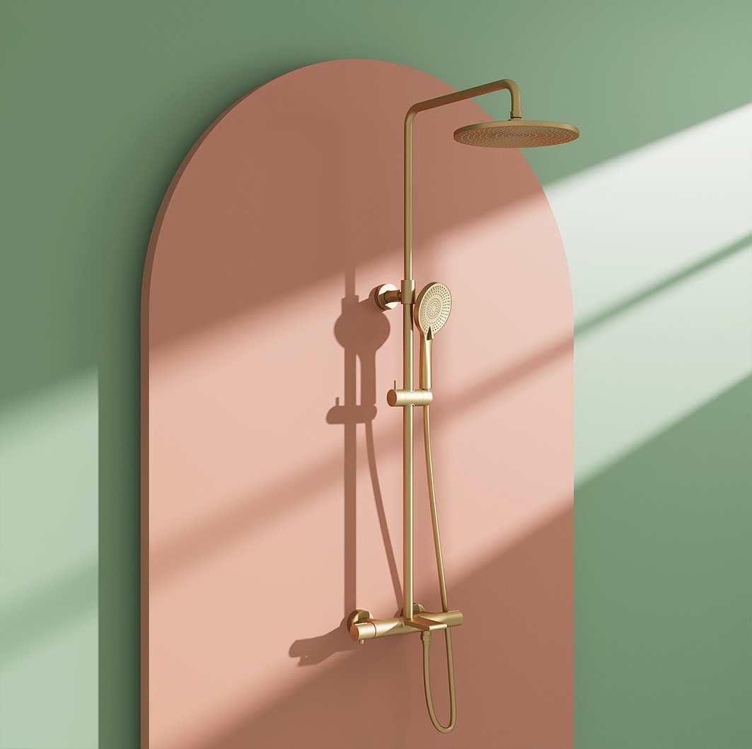 Душевая стойка с изливом AVS Elegant брашированное золото