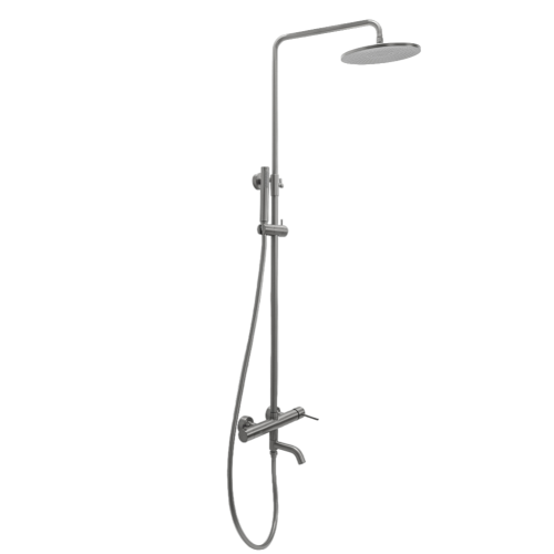 душевая стойка; комплект эксцентриков; смеситель; верхний душ; душевой шланг; ручной душ; инструкция.