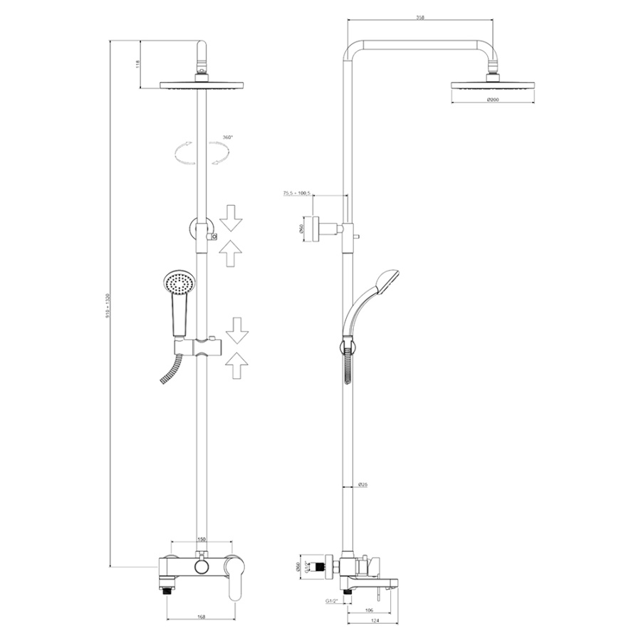 Верхний душ; Штанга; Ручной душ; Шланг; Смеситель