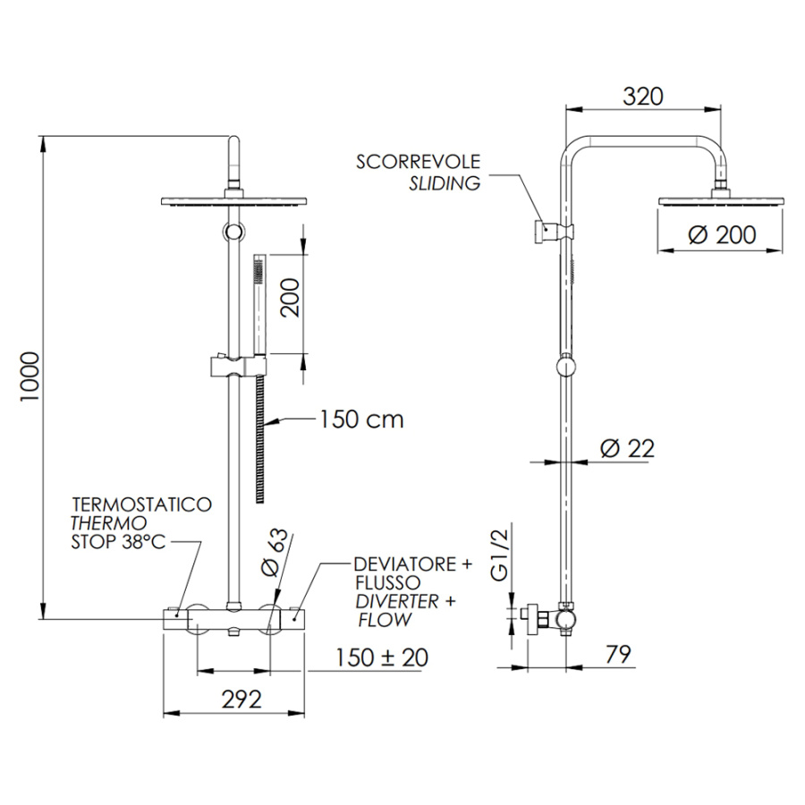 Душевая стойка Remer Elegance EQ32X7MMM20NPO брашированный никель