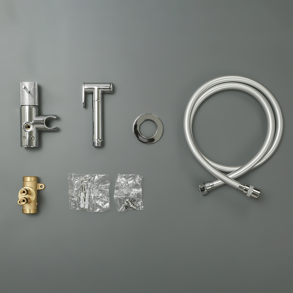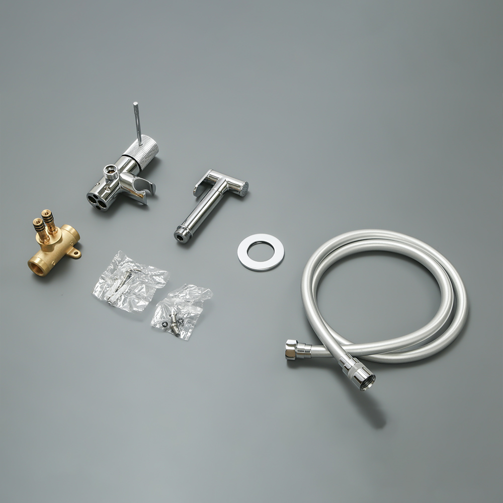 смеситель; монтажный блок; гигиенический душ; душевой шланг; инструкция.