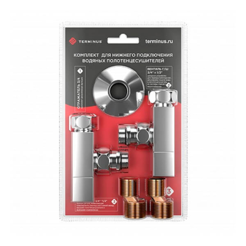 /Комплект: квадратный вентиль угловой 3/4x1/2 эксцентрик отражатель Терминус