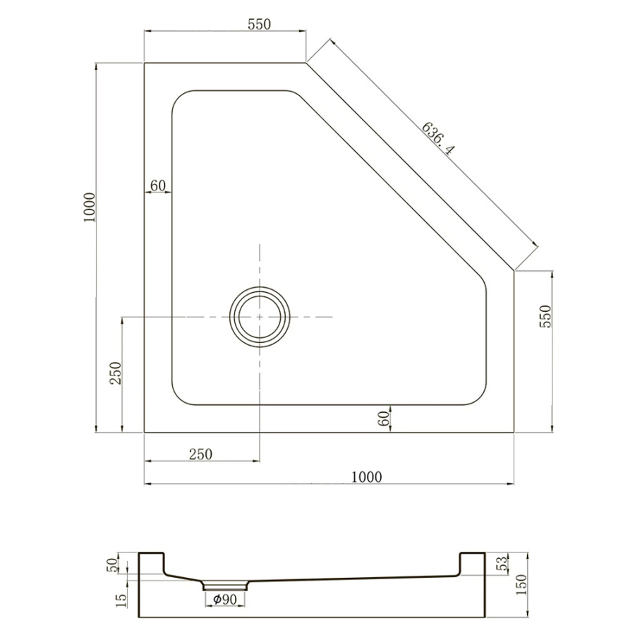 Поддон для душа Veconi Tezeo 100x100 белый, пятиугольный, акрил, с сифоном