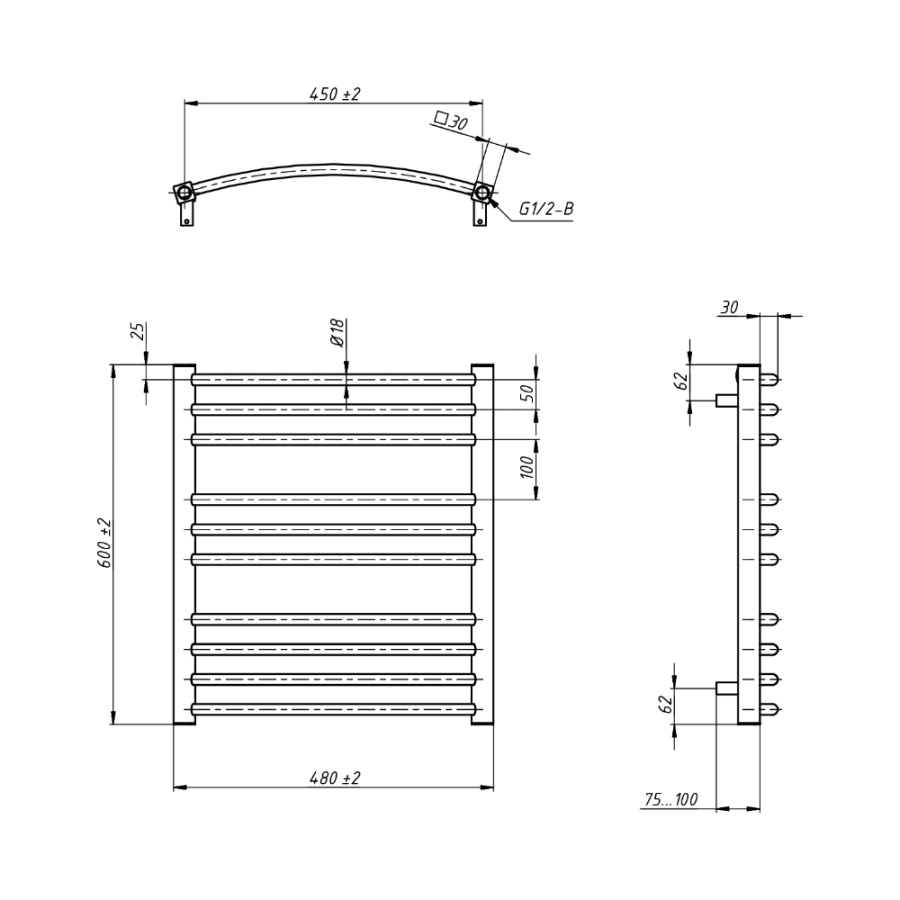 Полотенцесушитель, комплект декоративных заглушек, комплект креплений, кран маевского.приобретаются отдельно: отражатели