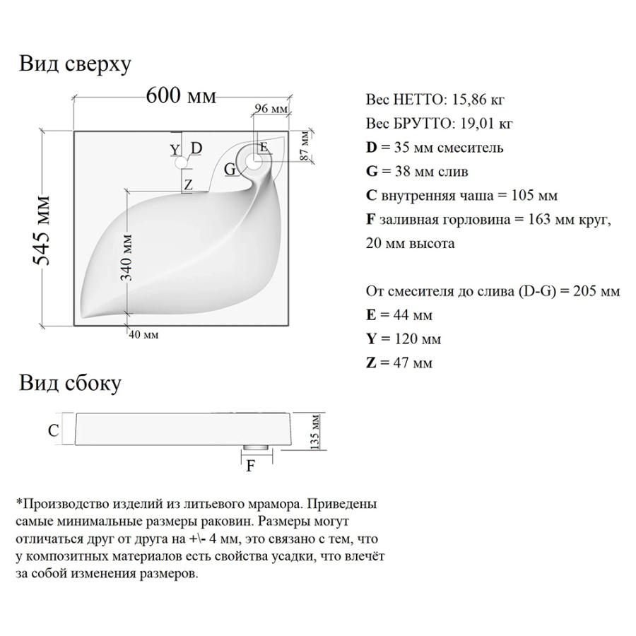 Раковина Madera List 4627173210546 60x54,5 белая с кронштейнами