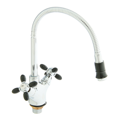 Смеситель д/кухни двухвентильный, с гибким изливом, черный/хром Accoona