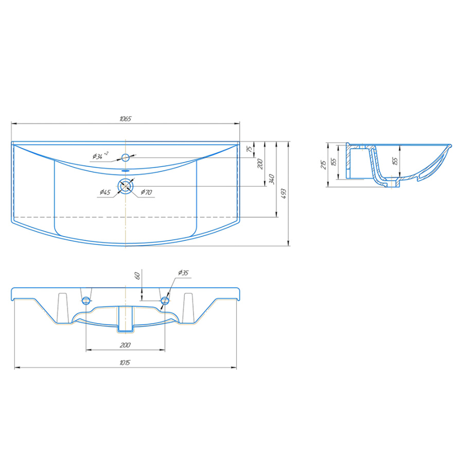 Тумба с раковиной Runo Стиль 00000001118+УТ000001524 105 см