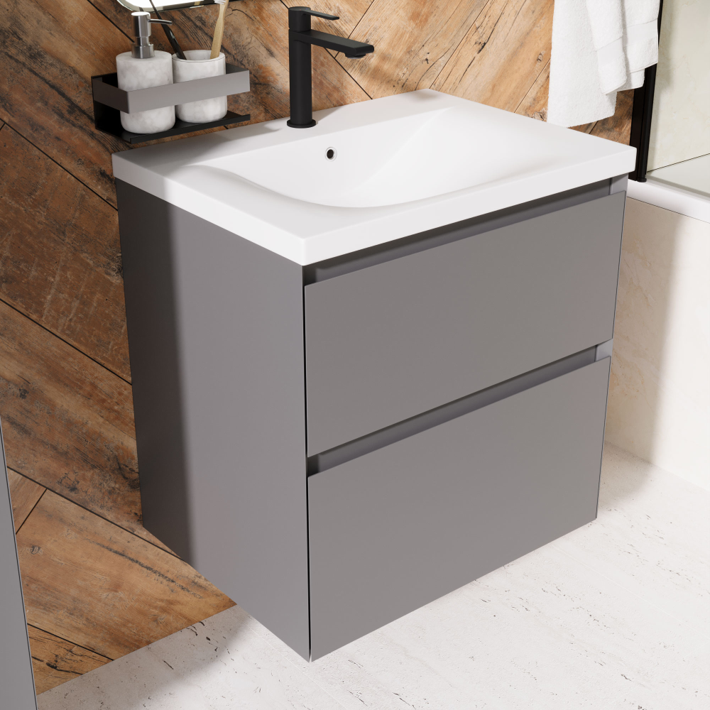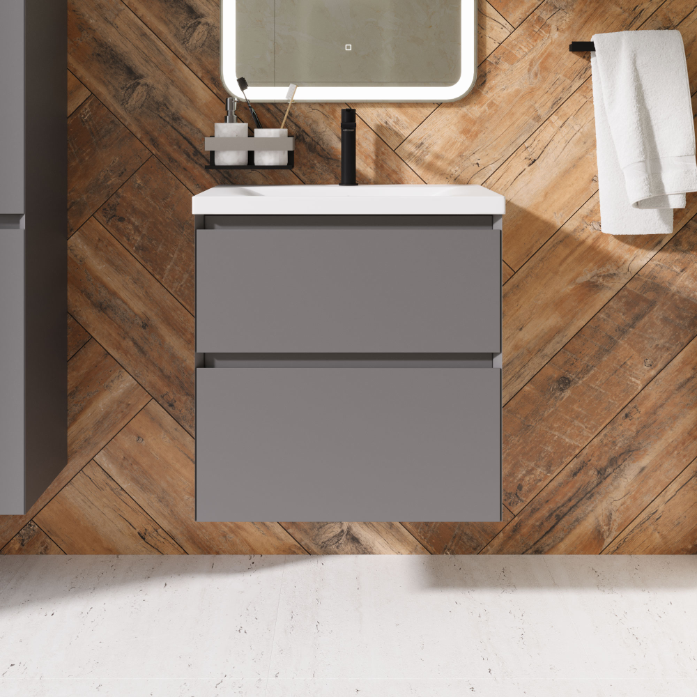 Тумба с раковиной AVS Гармония 60 платина матовая (раковина 01 белая глянцевая)