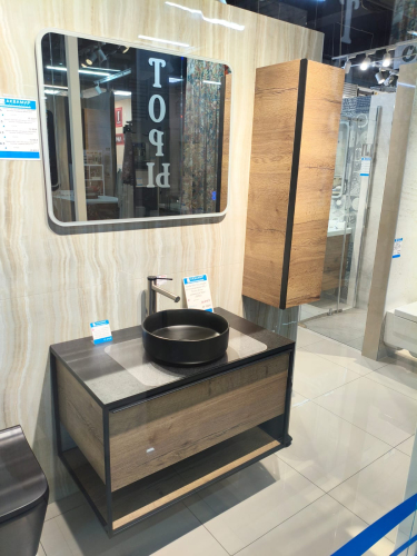 Тумба 900 1ящ подвес со столешницей HPL + Пенал Аттик древесный Steal JORNO