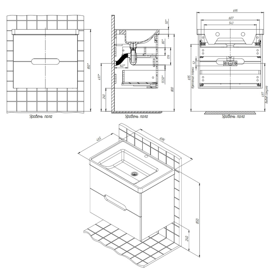 Тумба с раковиной Briz Пола 236 03-18070-15Н 70 см
