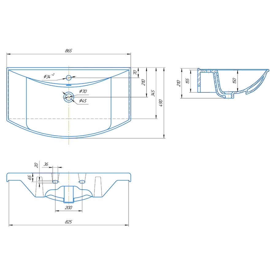 Тумба с раковиной Runo Стиль 00000001113+УТ000001523 85 см