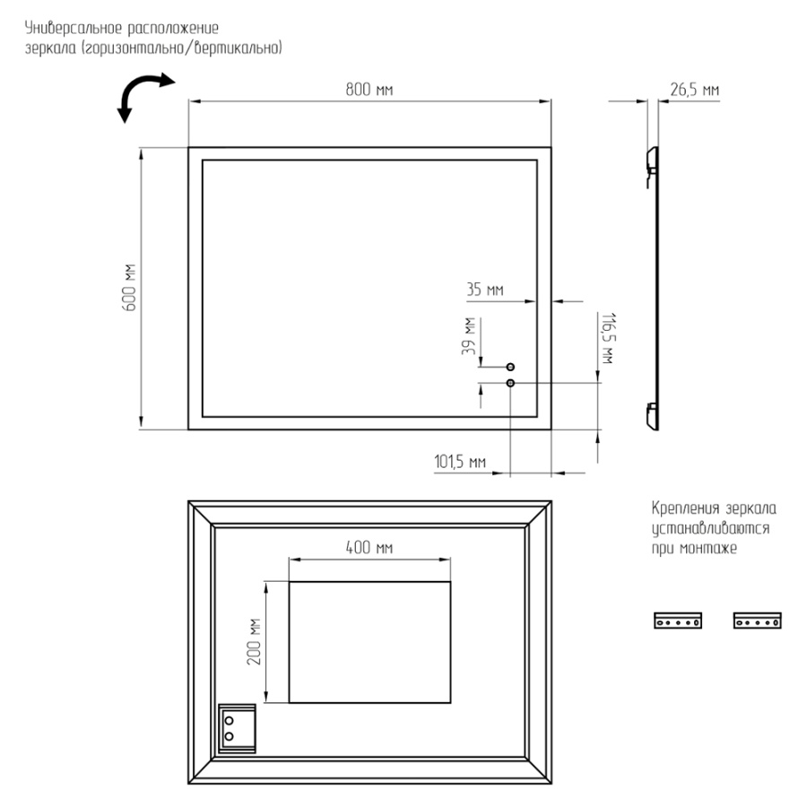 Зеркало с подсветкой AVS Жасмин 80x60 см, антипар