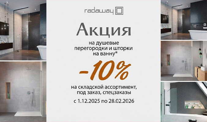 Встречайте зиму с обновленным интерьером! Бренд Radaway объявляет сезон выгодных цен на свои самые стильные и современные решения для ванных комнат.