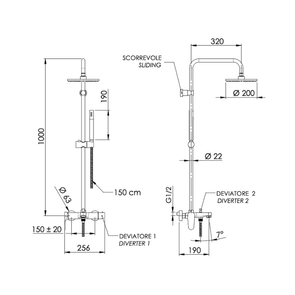 Размер верхнего душа см 25