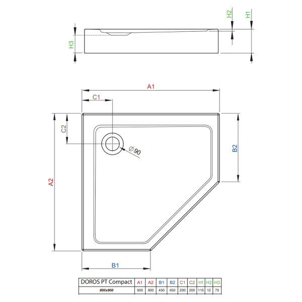 Поддон для душа Radaway Doros 90x90 белый, без сифона