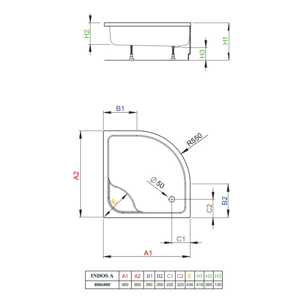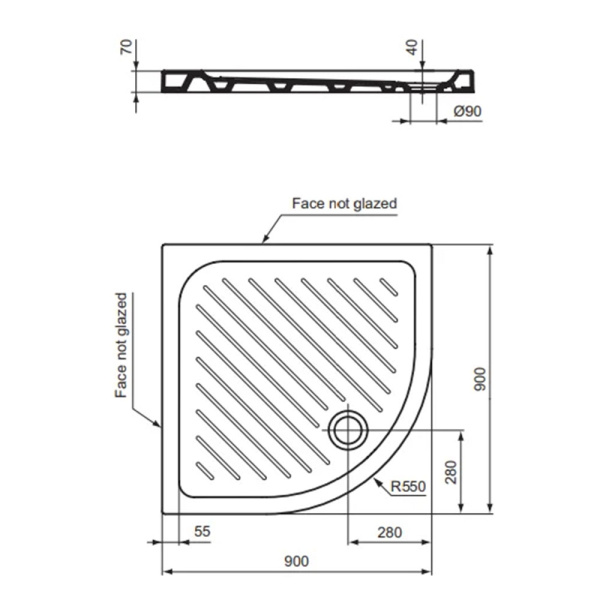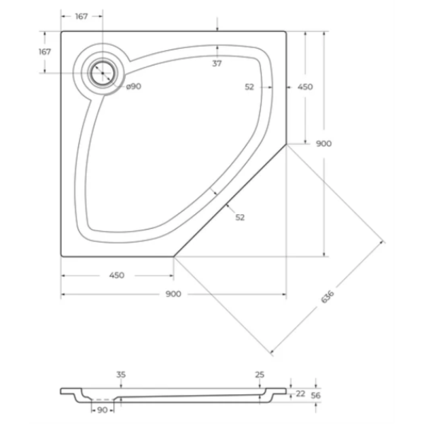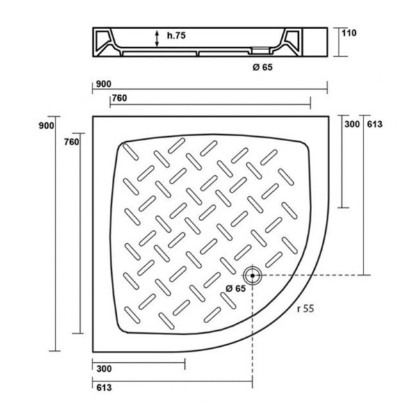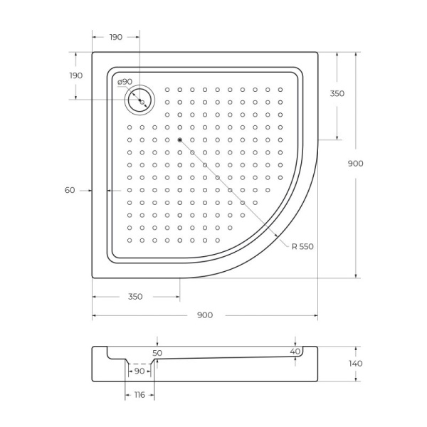 Поддон SOLE, Omega\Radius 90*90 (1/4 круга) слив d90 SOLE