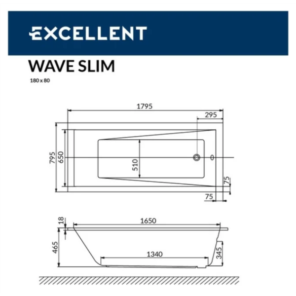 Акриловая ванна Excellent Wave Slim 180x80 белая, каркасом, сливом-переливом и ГМ Soft