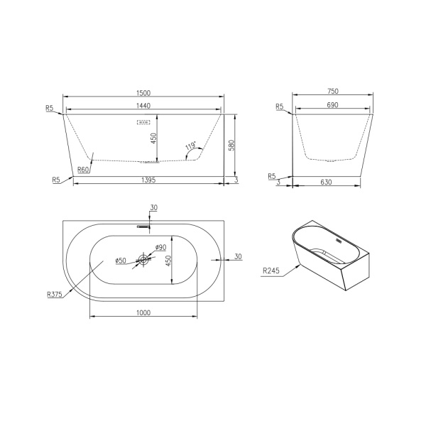Мы предлагаем ванны разных форм, чтобы каждая модель идеально подходила под особенности интерьера и площади ванной комнаты: