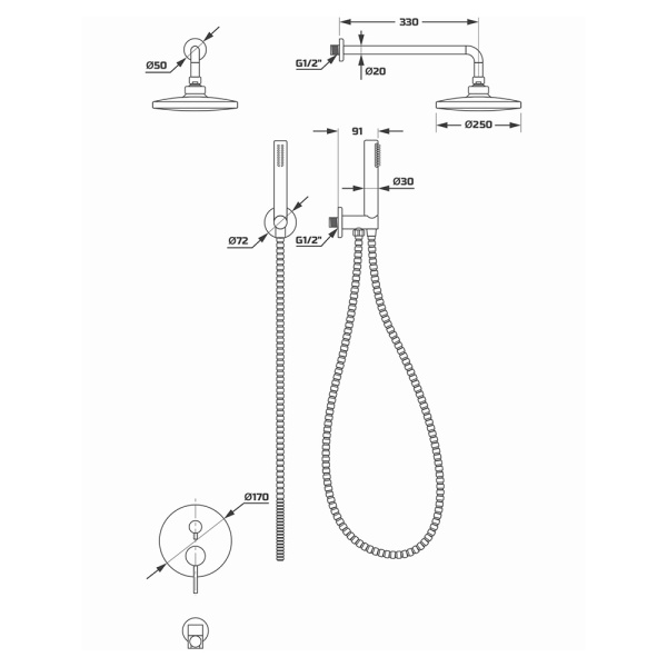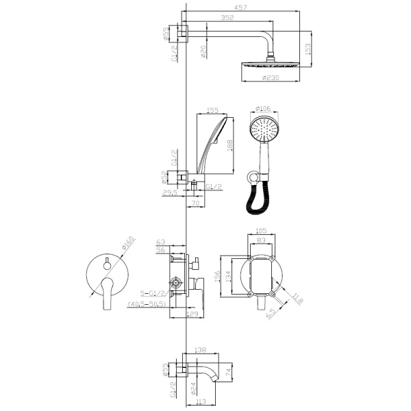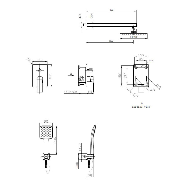 Душевая система скрытого монтажа 7в1 Singapore Black ESKO